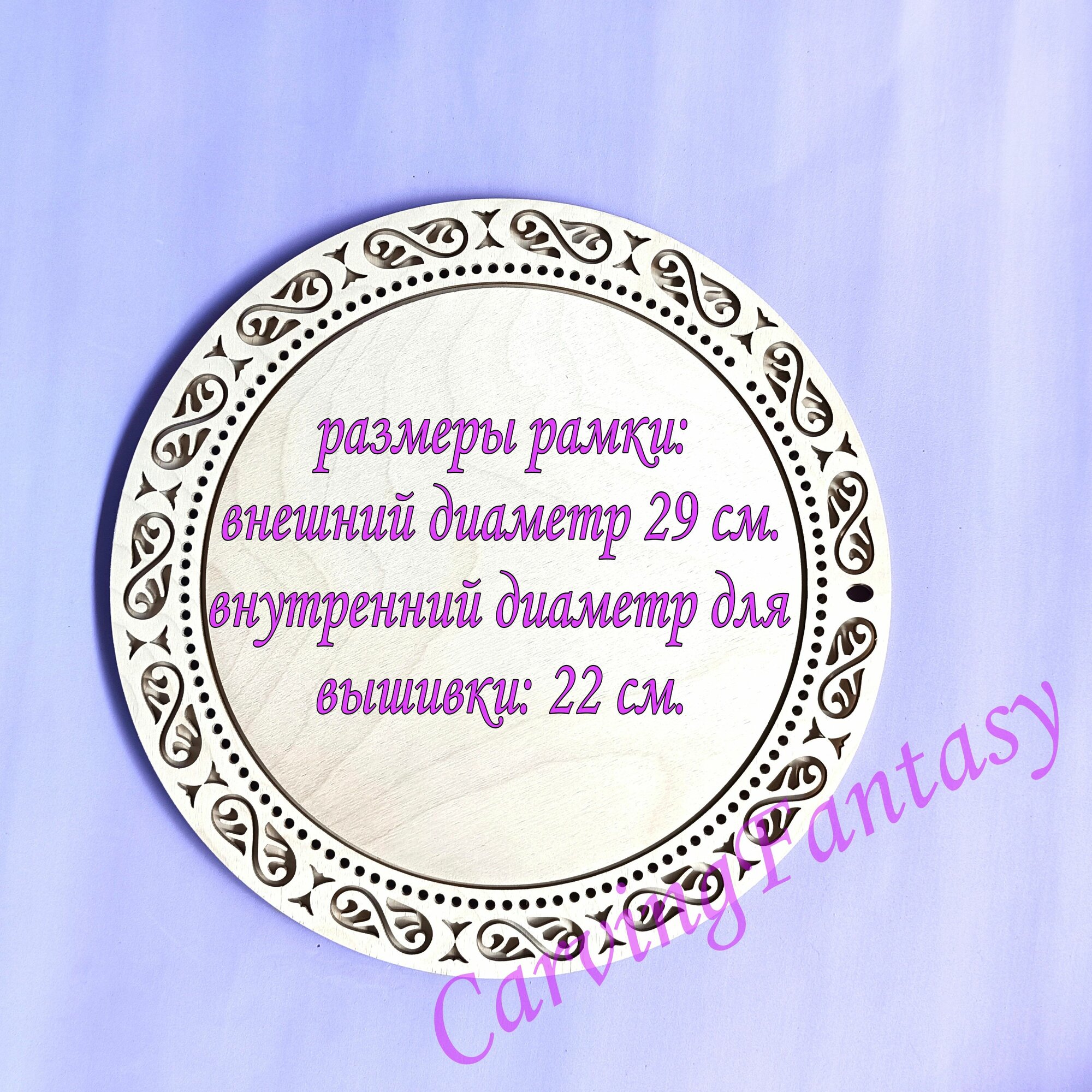 10 цен на Деревянная рамка для оформления вышивки круглая большая Орнамент 22 см.