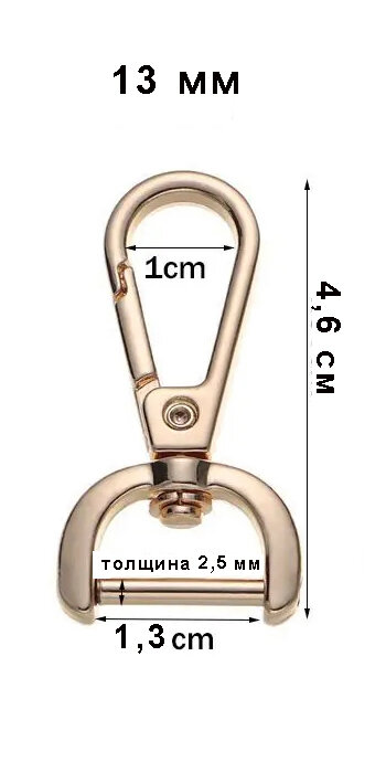 Карабин для сумки поворотный с кольцом, 10 мм (14*32 мм), металл (золото), 20 шт