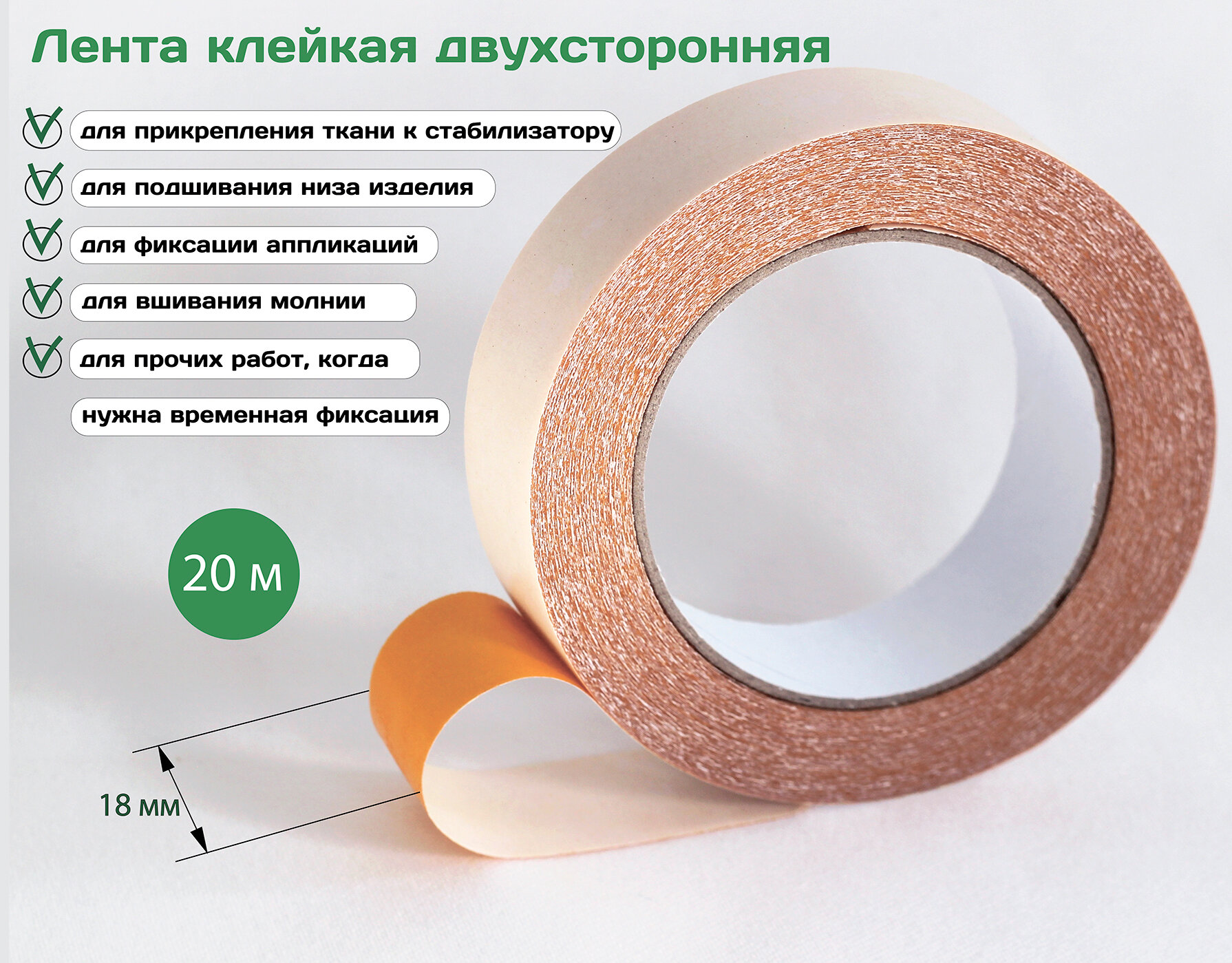 10 цен на Лента клейкая, скотч двухсторонний для ткани и кожи ширина 1,8 см, длина 20 м