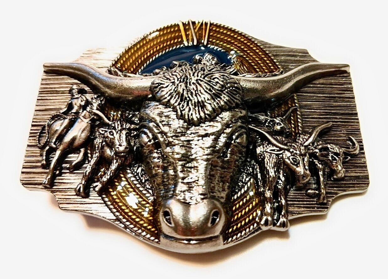 Пряжка для ремня (бляха) с изображением головы буйвола, ковбоя с лассо, цветная эмаль информация: