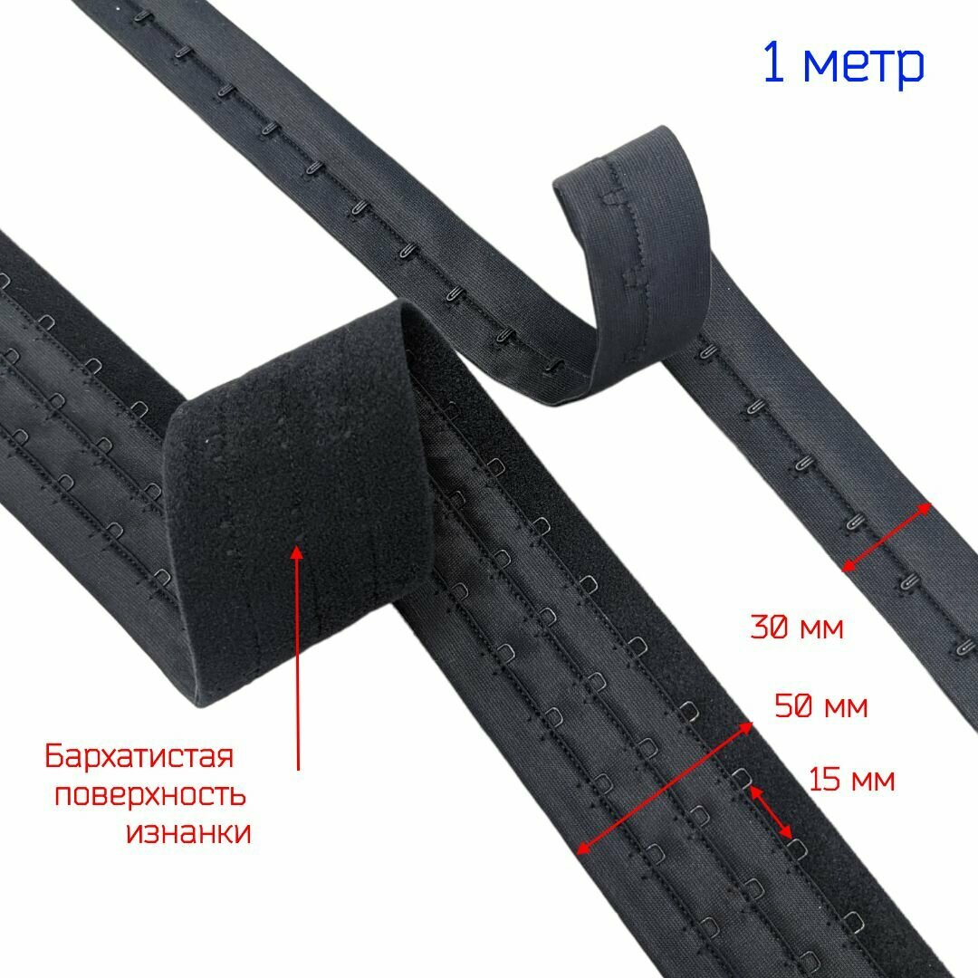 Лента с крючками и петлями в 3 ряда, черная, шир. 50 мм, для корсета и бюстгалтера, 1 метр информация: