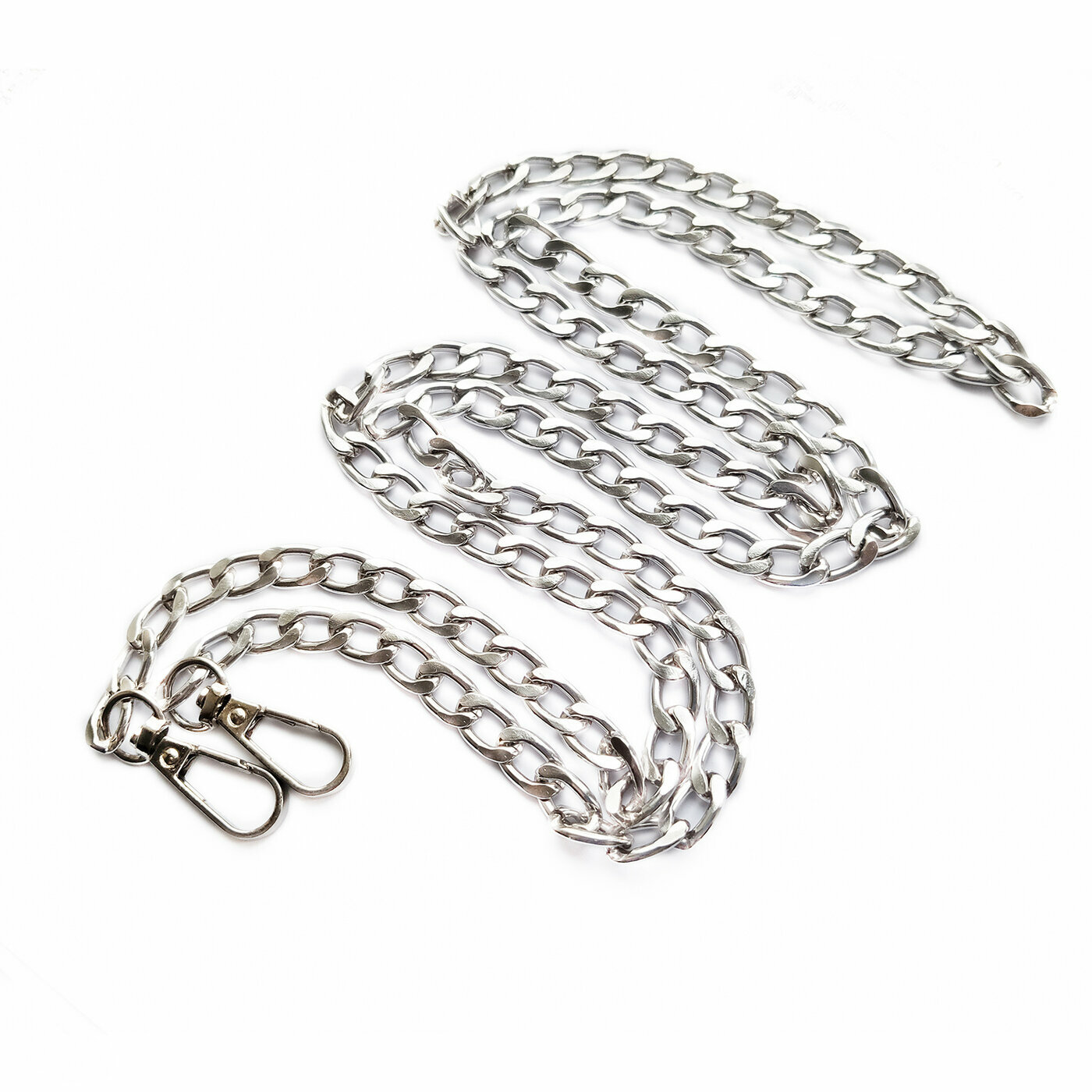 Цепочка для сумки с карабинами металлическая, длина: 120 см, звено: 9х14 мм, цвет: серебристый информация: