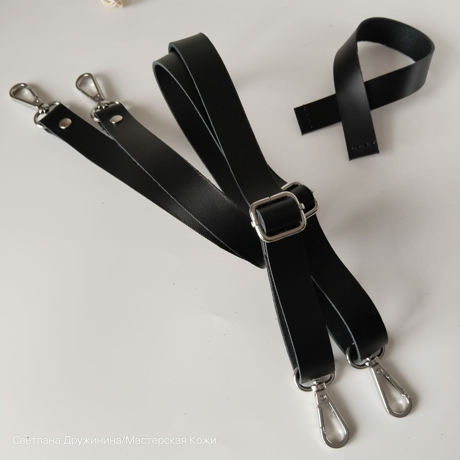 Лямки для рюкзака 75 см кожа + ручка 30 см, чёрная информация: