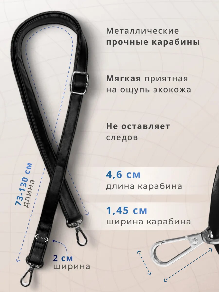 Отзывы на Ремень для сумки Magia Hobby регулируемая длина, 130см, искусственная кожа, черный/серебро