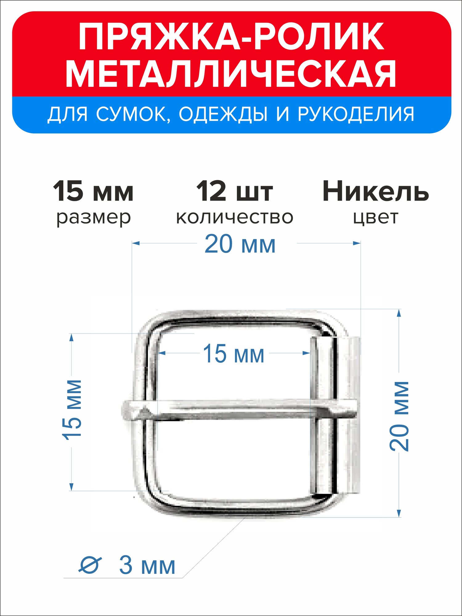 Пряжка-ролик металлическая 15 мм, 12 штук информация: