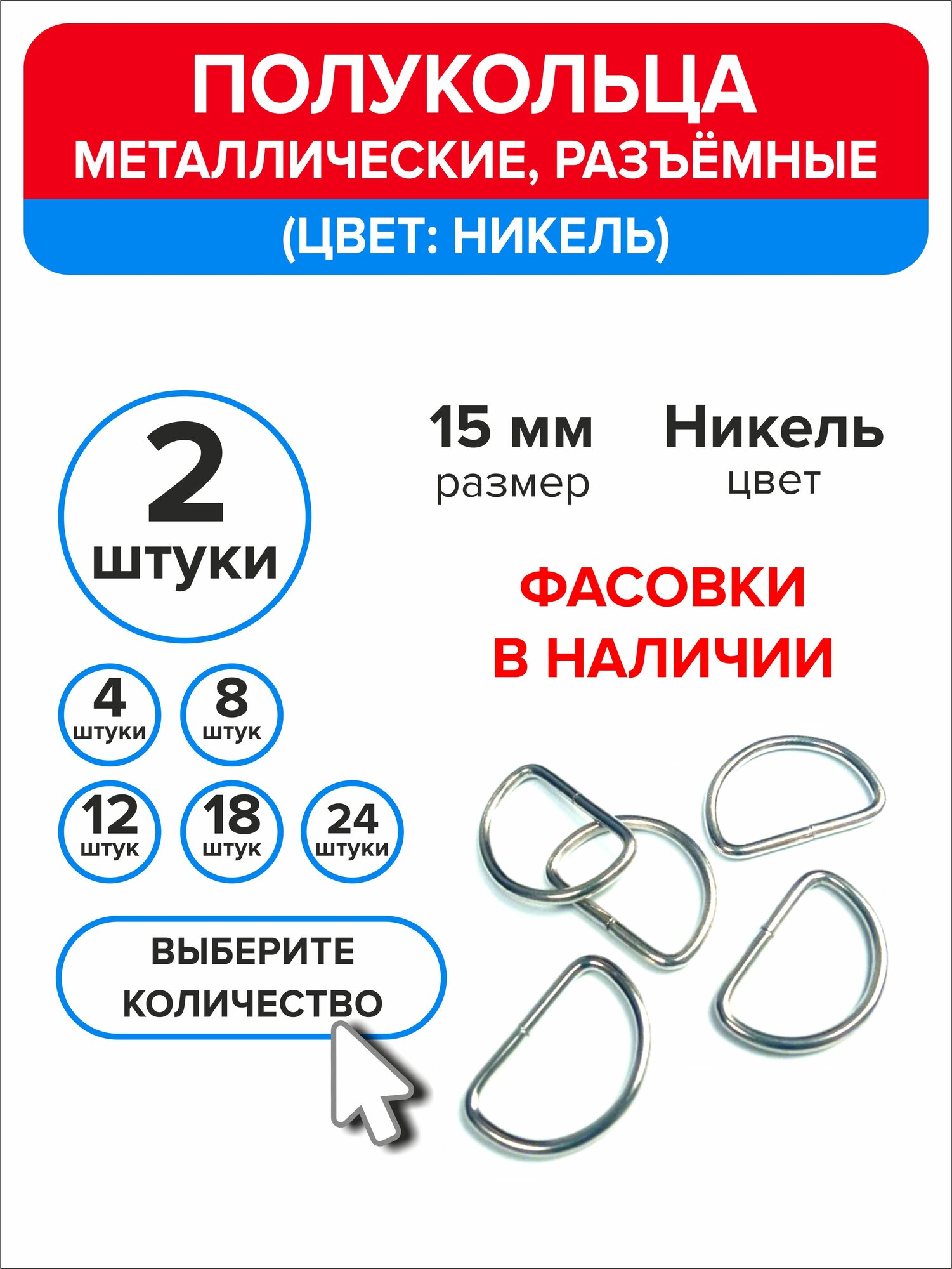 Полукольца металлические для сумок, d кольцо 15 мм, 2 штуки информация: