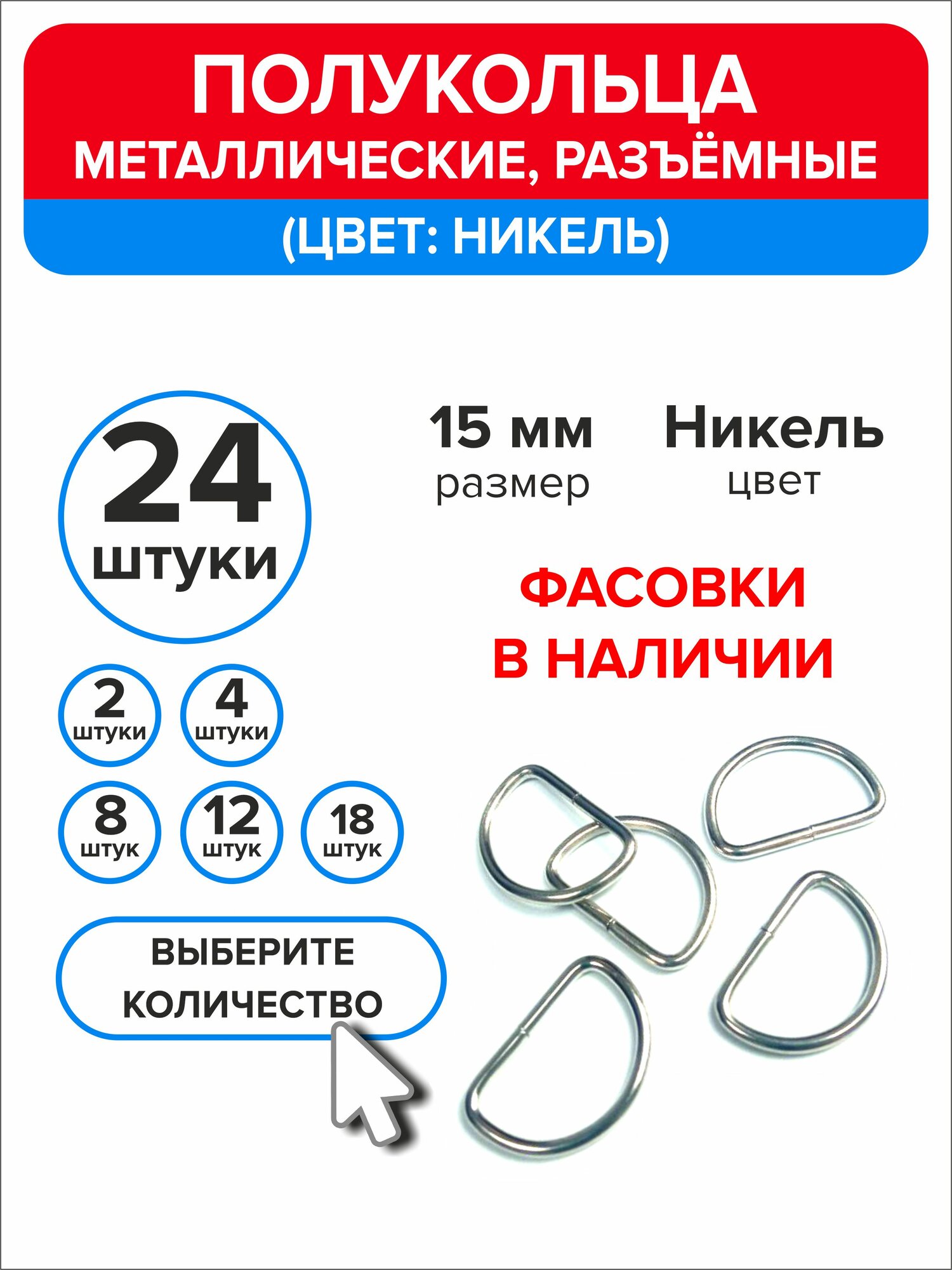 Полукольца металлические для сумок, d кольцо 15 мм, 24 штуки информация: