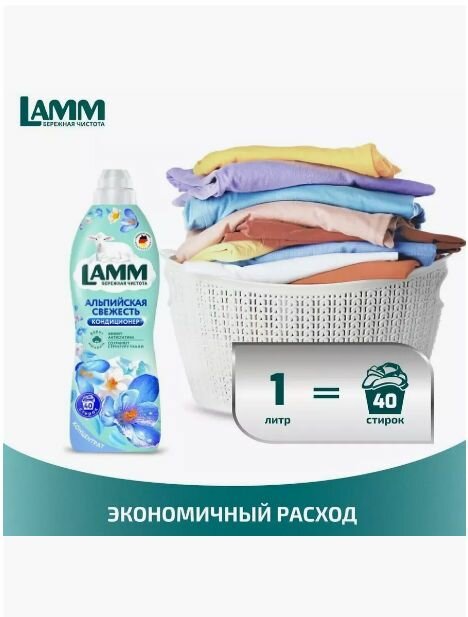 Кондиционер ополаскиватель для белья LAMM Альпийская свежесть 1 л, концентрат, 40 стирок, универсальный, 1 литр, для всех типов белья