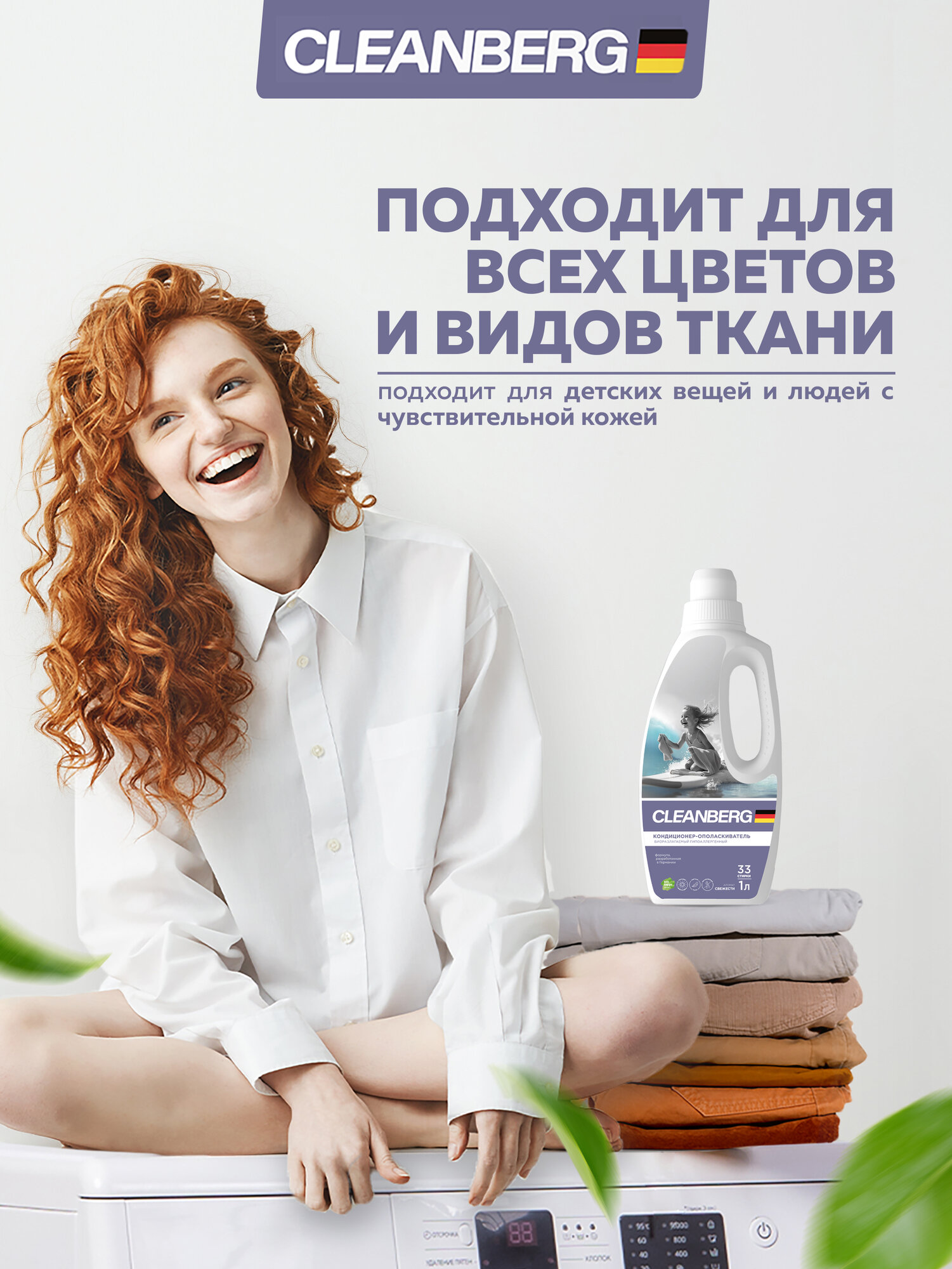 Кондиционер для белья CLEANBERG "Свежесть" ополаскиватель для белья гипоаллергенный 1л 357 ₽