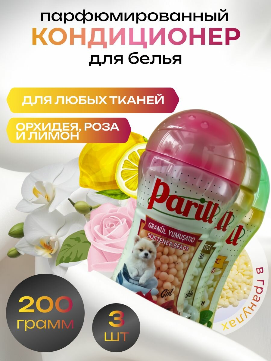 10 цен на Кондиционер для белья парфюмированный Parill, 3 шт по 200г, в гранулах, 60 стирок