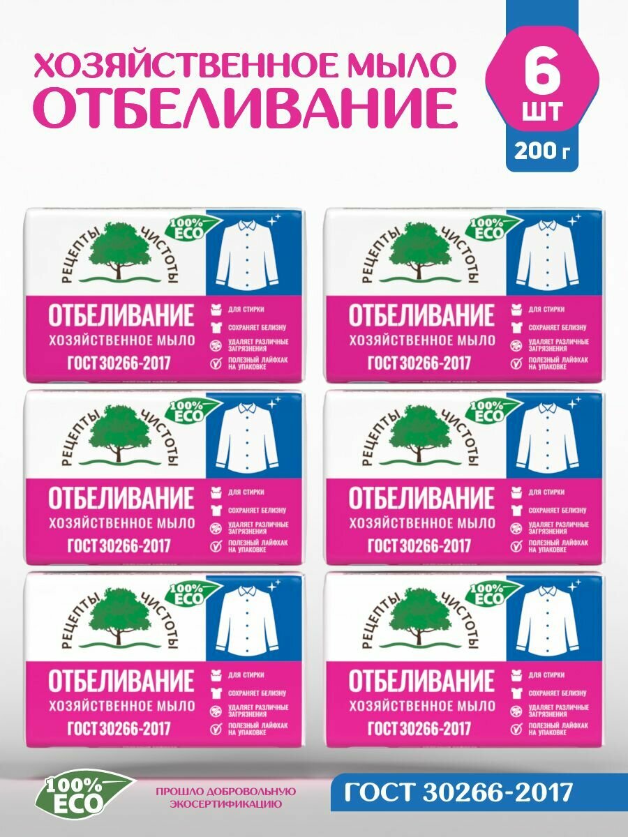 Мыло хозяйственное Отбеливающее, 6 штук по 200 грамм от мнжк информация: