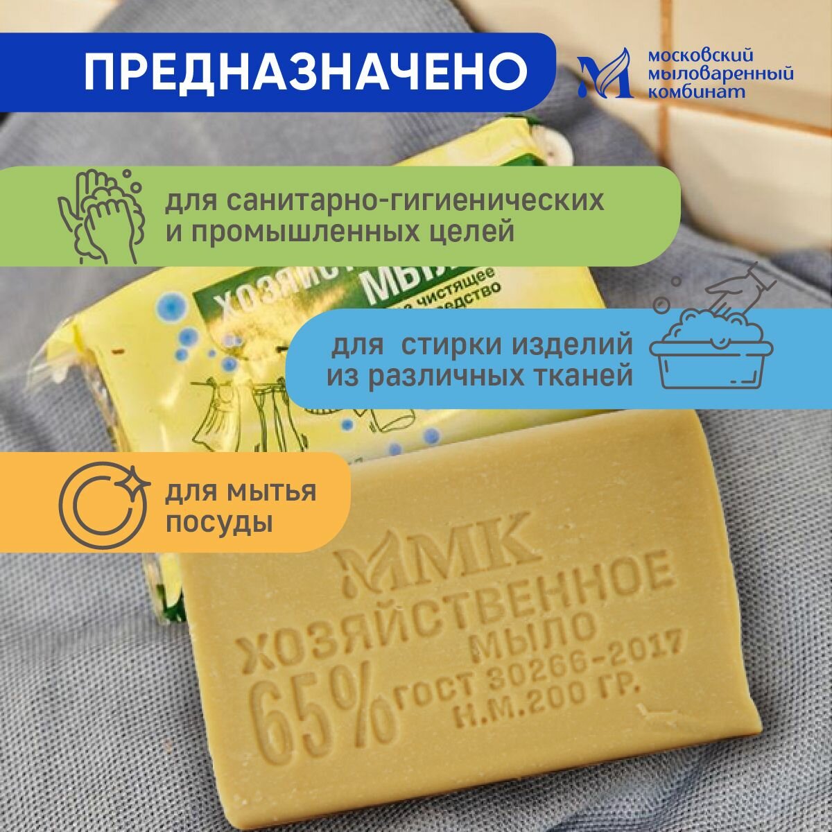 Мыло хозяйственное твердое 65 % 200 гр. 4 шт. Московский мыловаренный комбинат. информация: