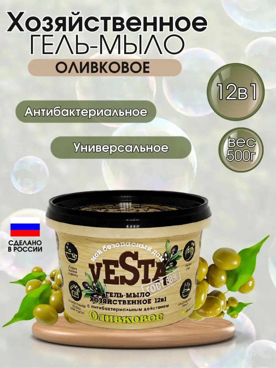 Vesta Универс. гель-мыло хозяйственное "Оливковое ГОСТ 88%" (500г).18 информация: