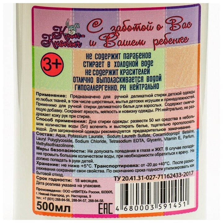 Мыло жидкое хозяйственное для стирки детского белья 0,5 л "Кноп-кнопыч" пуш-пул 4100003911 (Артикул: 4100003911) информация: