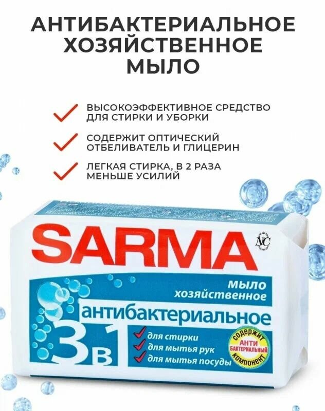 Набор Хозяйственное мыло Сарма с антибактериальным эффектом 140 г. х4шт. информация: