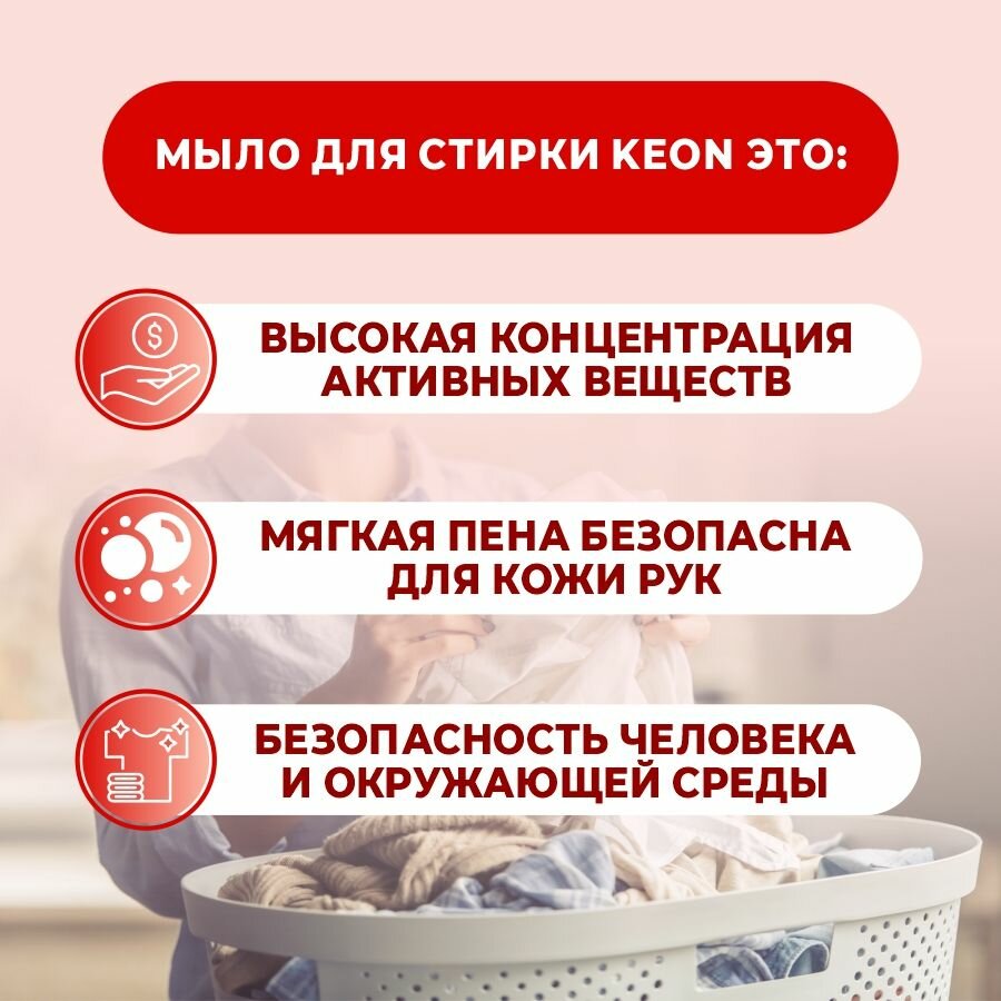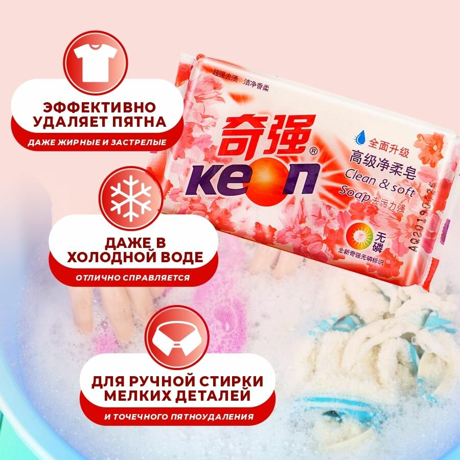 Мыло хозяйственное смягчающее для стирки KEON, 202гр информация:
