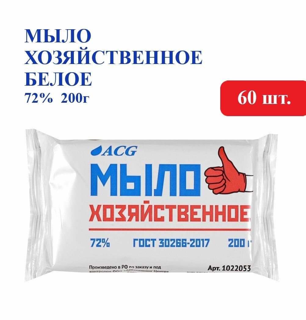 10 цен на Мыло хозяйственное белое без запаха ACG 72% 200гр, 60 штук в упаковке, ГОСТ
