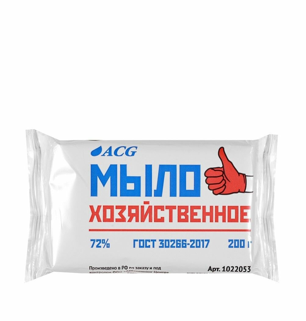 Мыло хозяйственное белое без запаха ACG 72% 200гр, 60 штук в упаковке, ГОСТ информация: