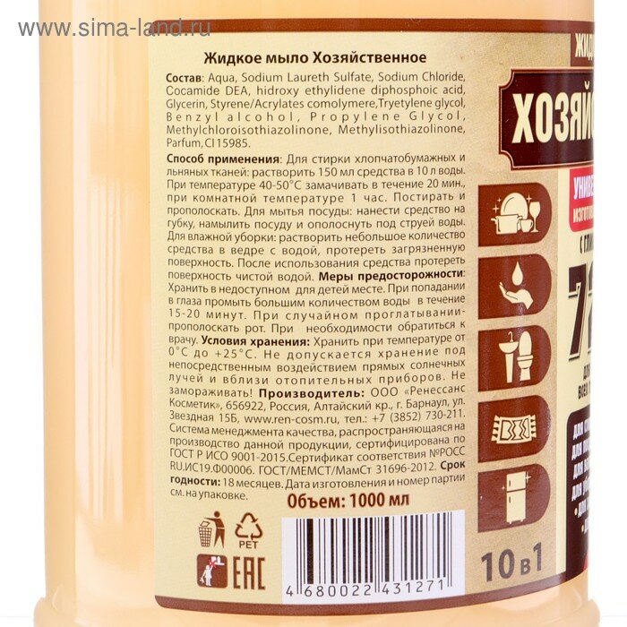 Жидкое мыло хозяйственное универсальное, 1 л. информация: