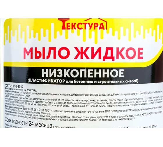 Жидкое мыло низкопенное (пластификатор для смеси) 5л ТЕКСТУРА ЯСХИМ сделано из прочных и качественных материалов информация: