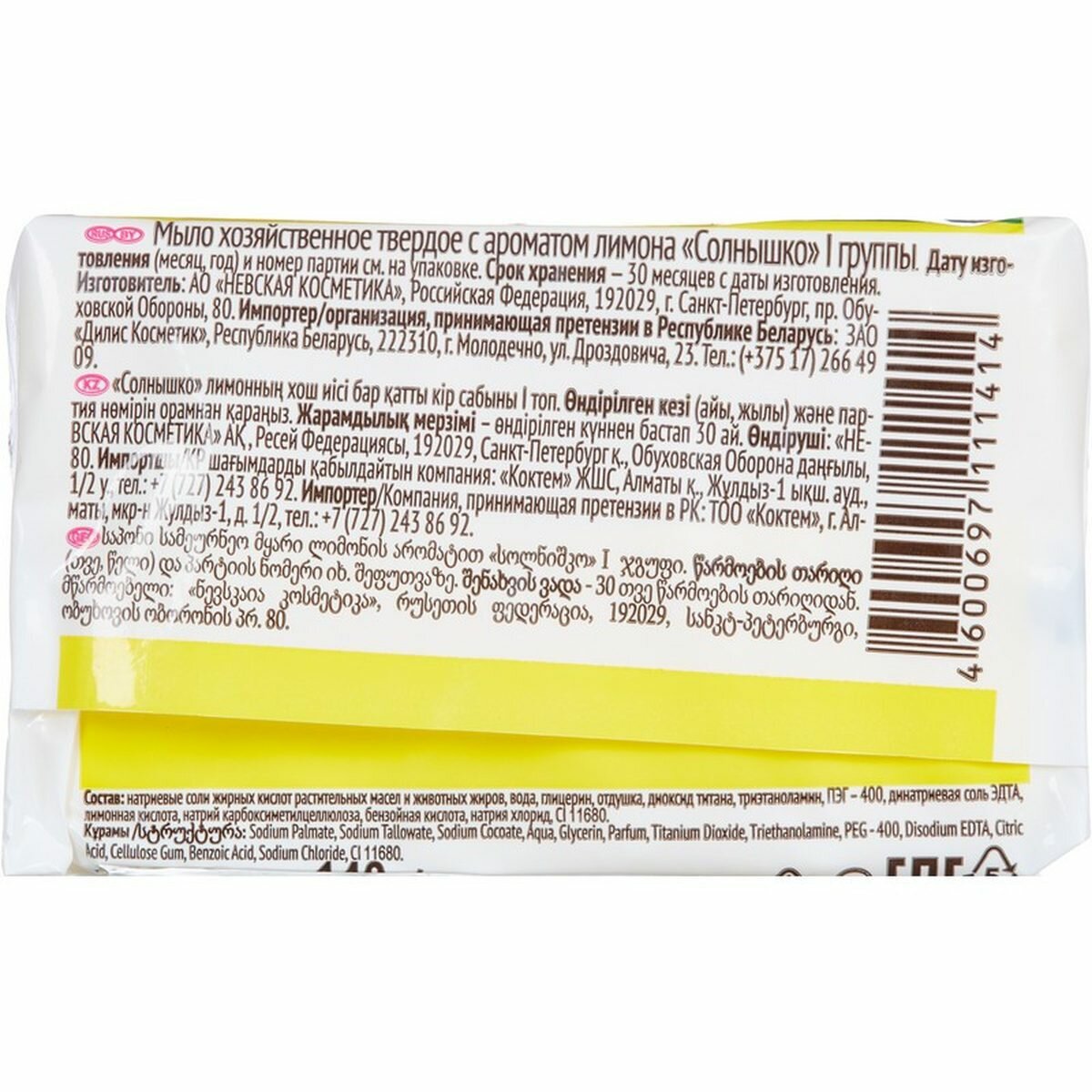 Мыло кусковое хозяйственное Невская Косметика "Солнышко" с ароматом лимона, 140г (11141), 1шт. информация: