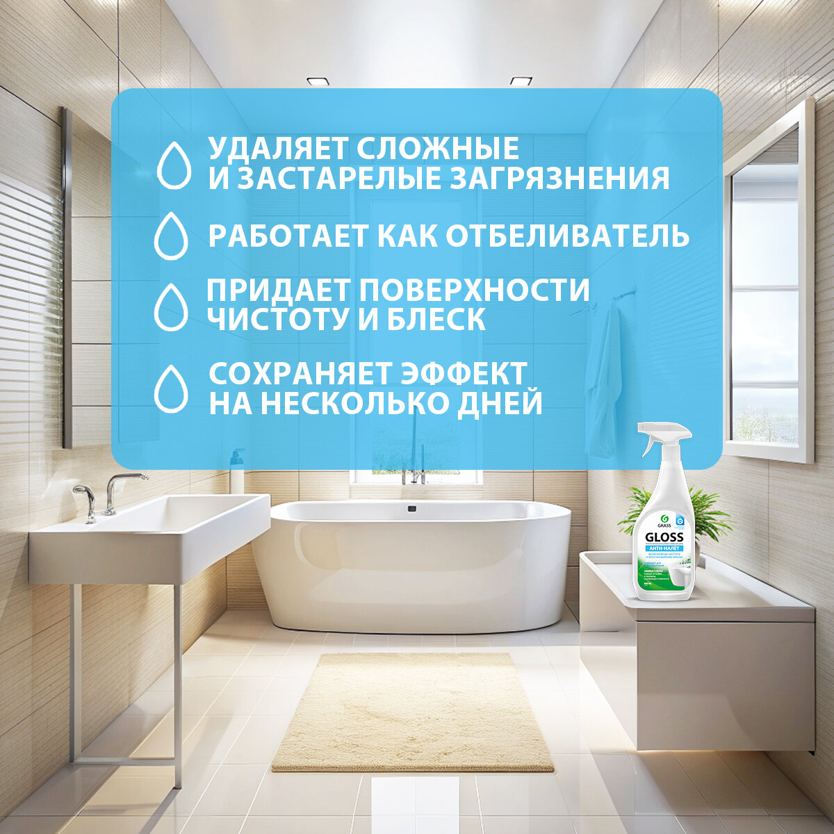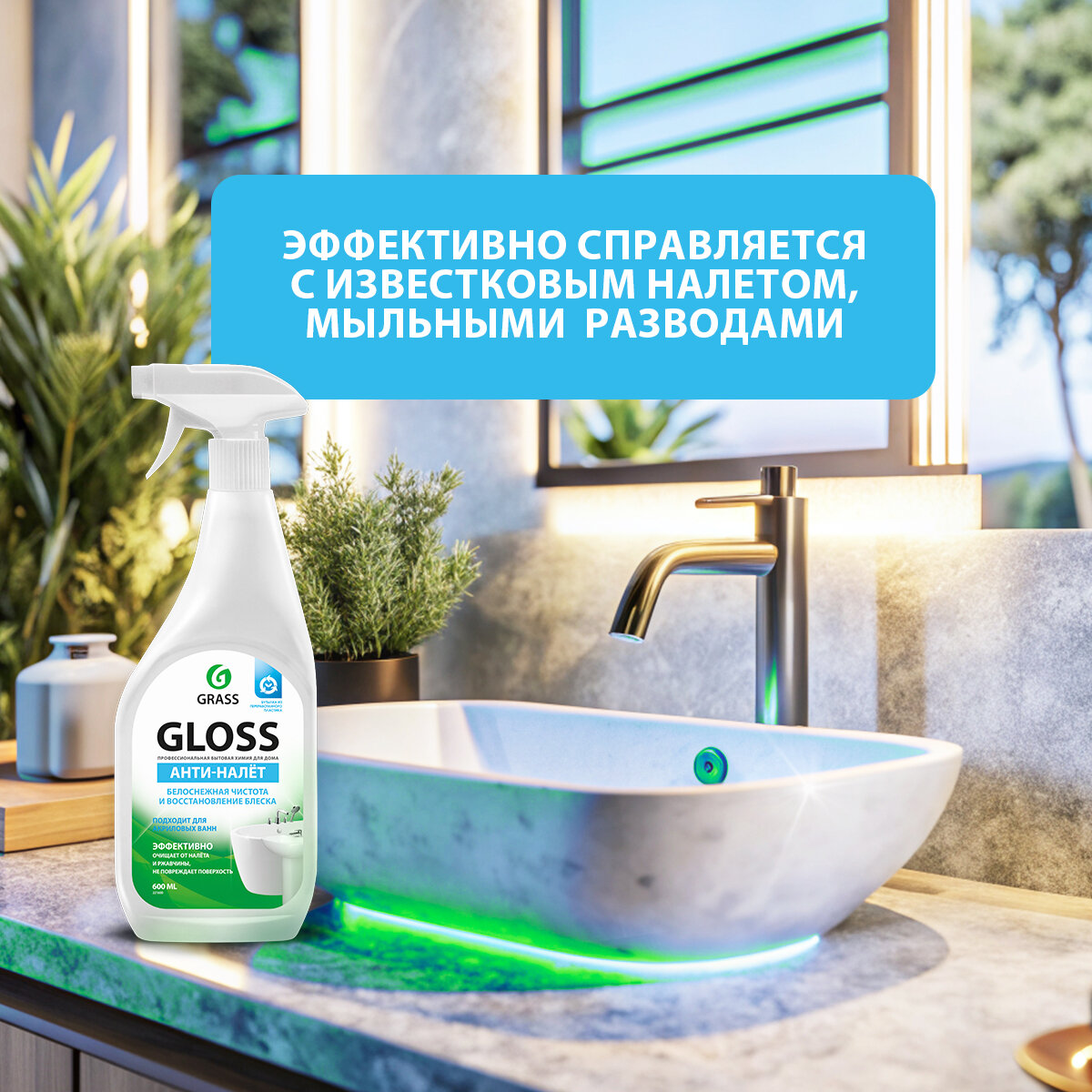 Отзывы на GRASS/ Средство для уборки сантехники GLOSS, от налета и ржавчины, антиналет, кислотное, спрей, 600 мл.