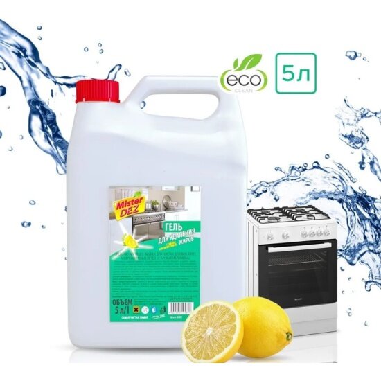 10 цен на Чистящий гель Mister Dez Eco-Cleaning анти-жир Лимон, для удаления стойких и пригоревших жиров, 5 л