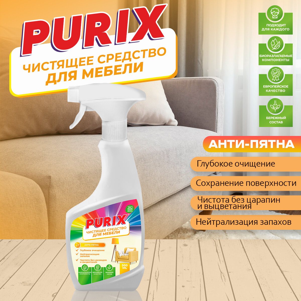 Пятновыводитель спрей, средство Анти-пятна Purix 500 мл для удаления пятен с мягкой мебели, ковров, в салоне автомобиля информация: