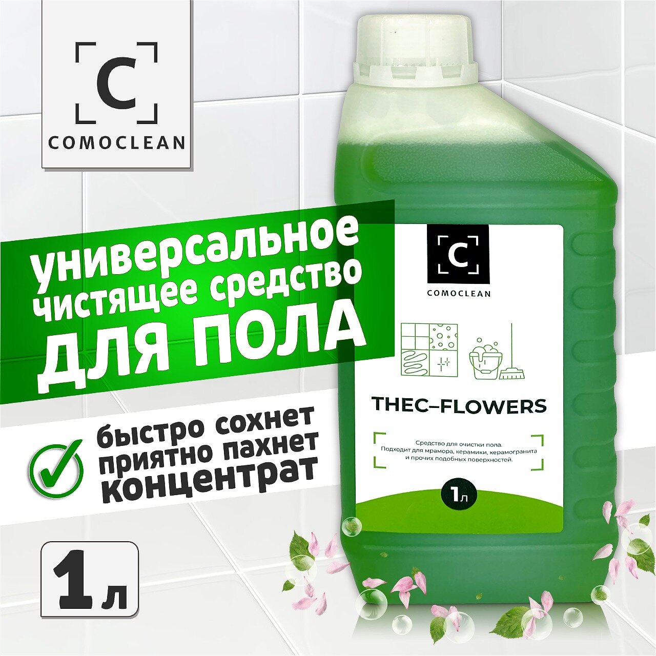 10 цен на Чистящее средство для мытья полов с приятным цветочным ароматом COMOCLEAN Thec-Flowers (1 л, концентрат)