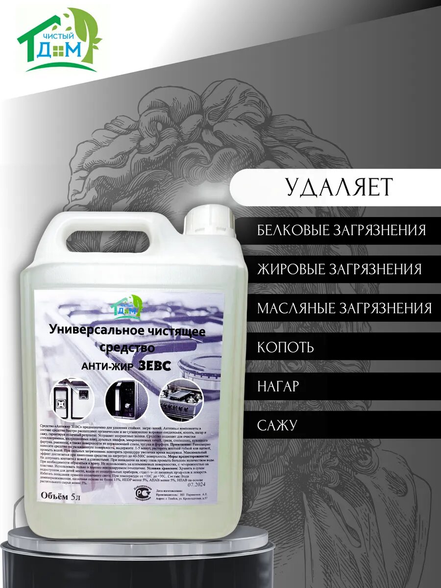 Чистящее средство Чистый Дом Зевс, для кухни, 5л, без отдушек информация: