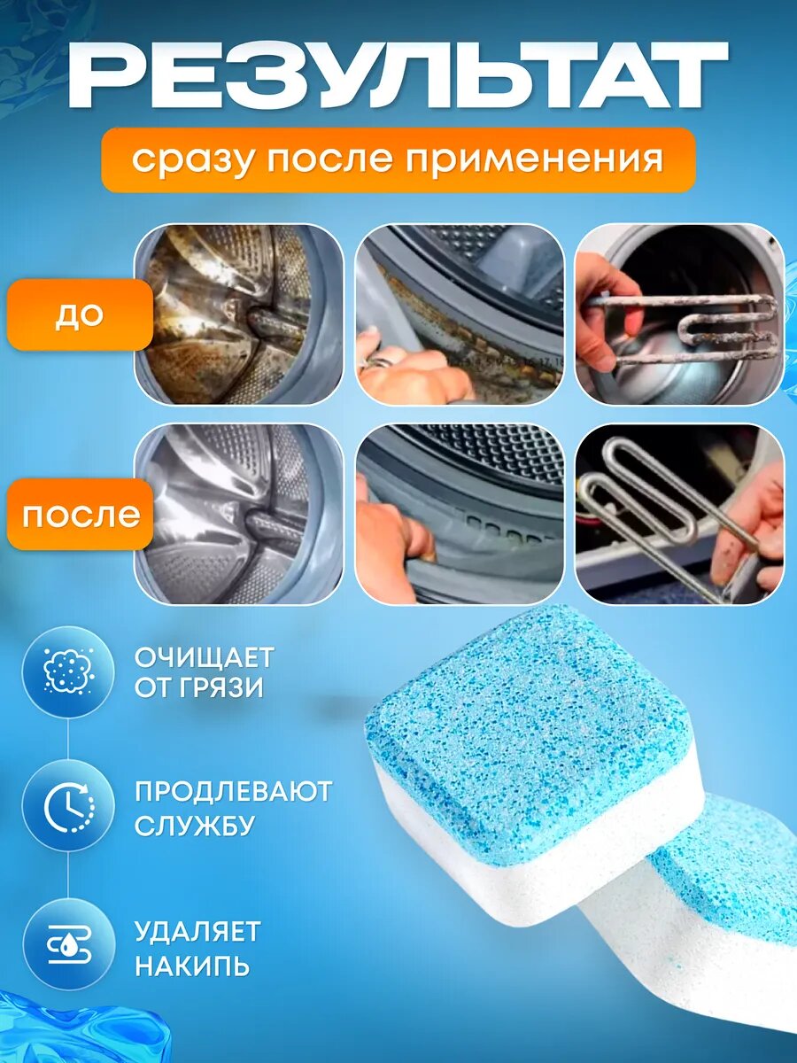 10 цен на Таблетки Fresh Wash, очистка стиральной и посудомоечной машины, антибактериальные, без хлора