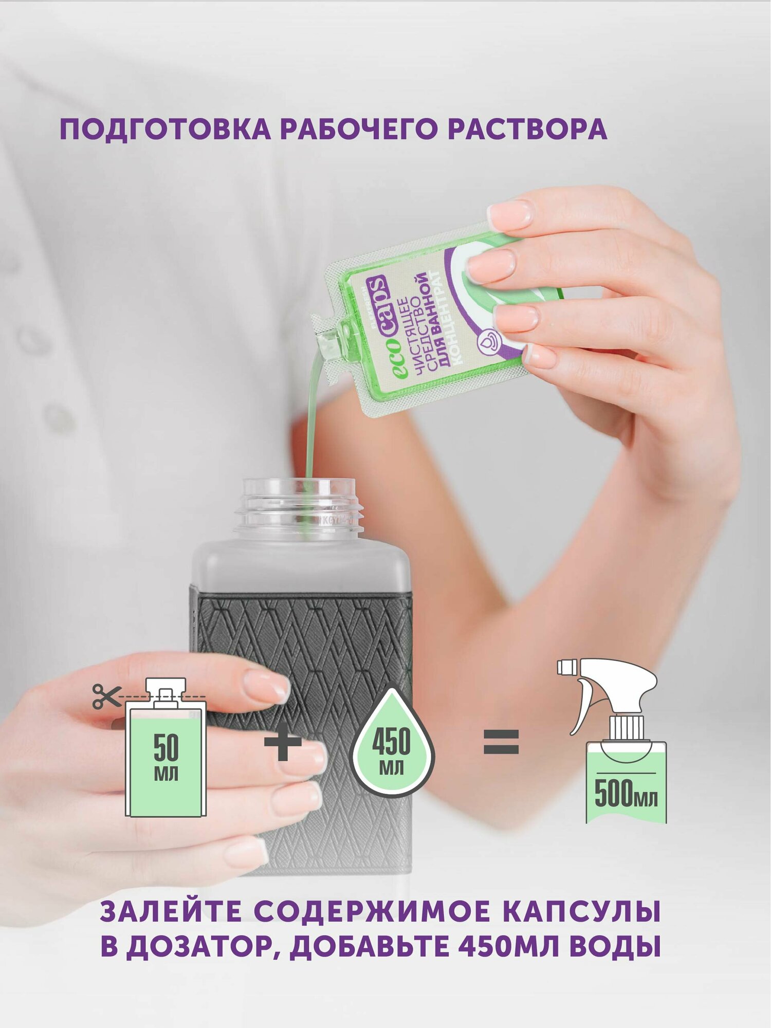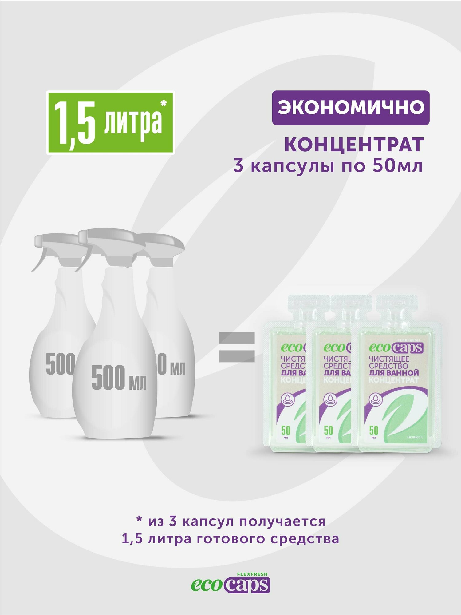Чистящее средство для ванны и сантехники EcoCaps (концентрат для разведения водой) 3 шт + флакон 500 мл бежевый информация: