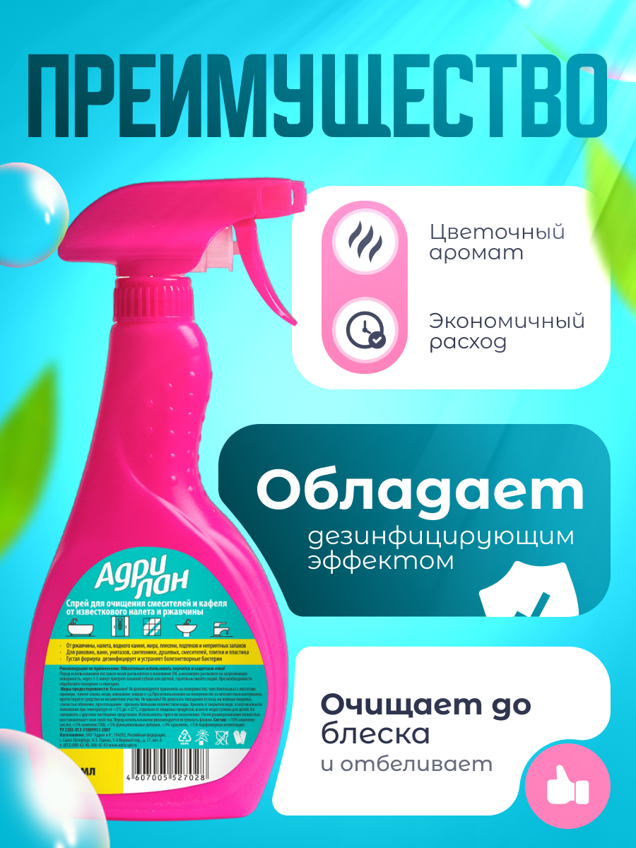 Адрилан спрей от известкового налета и ржавчины, 500 мл информация: