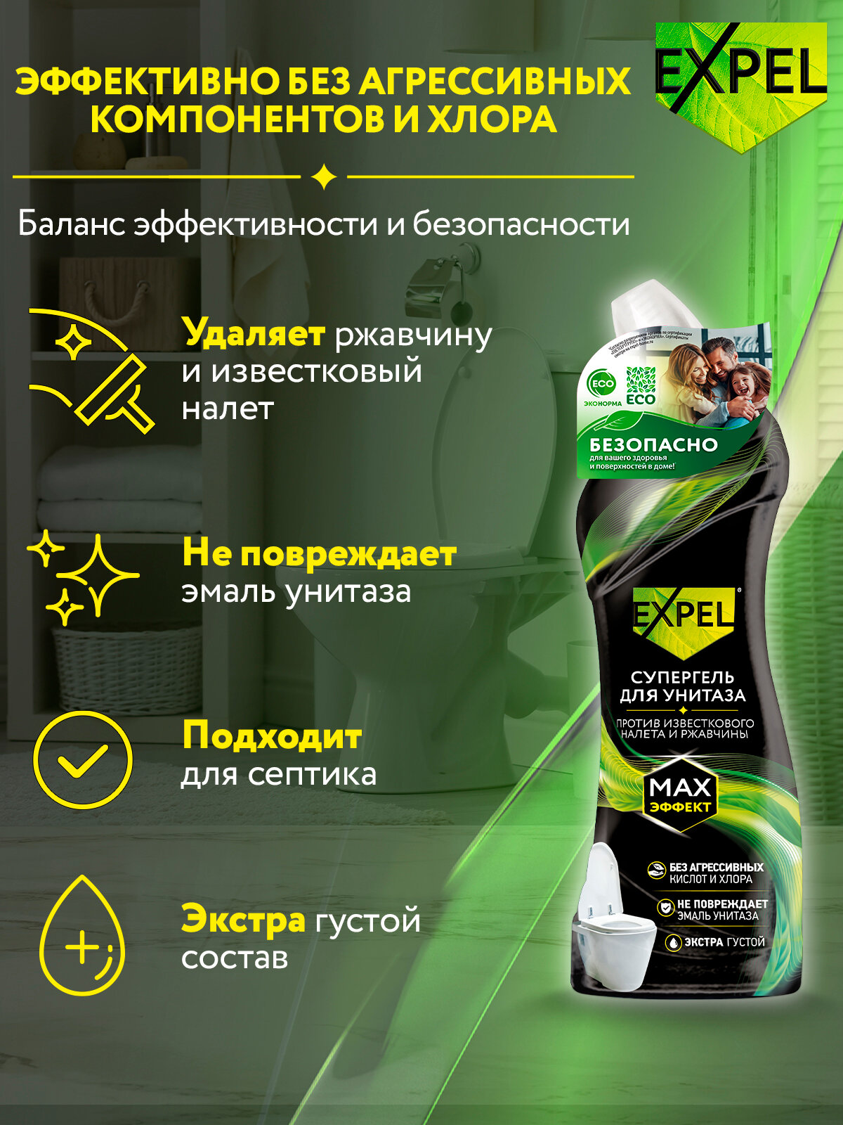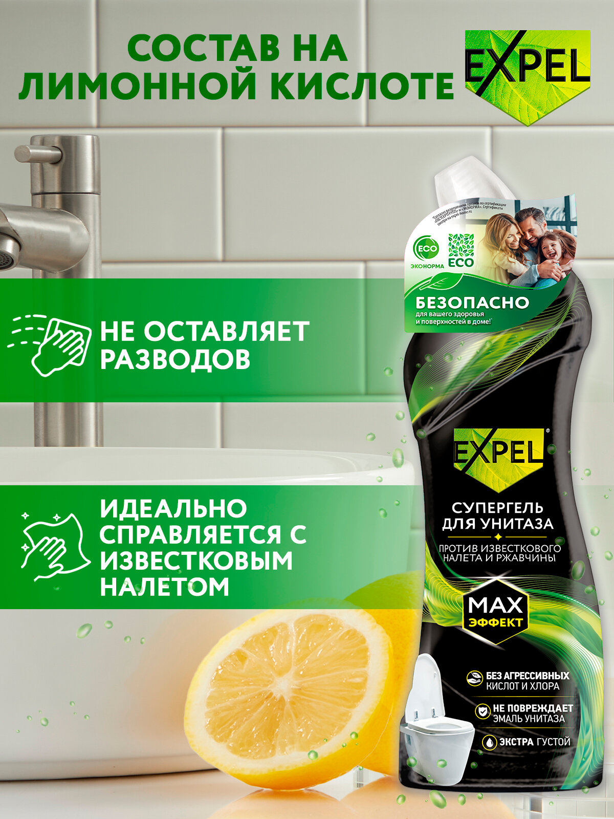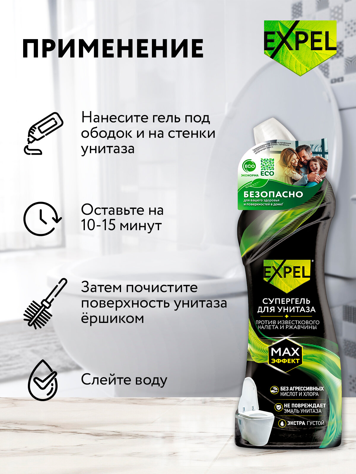Отзывы на Средство чистящее для унитаза Expel , густой Гель для туалета , 700 мл х 1 шт