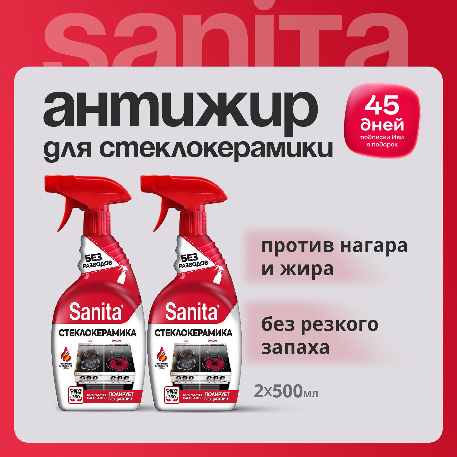 Sanita Набор: Спрей очиститель Антижир для стеклокерамики 500 мл ( 2 шт ) информация: