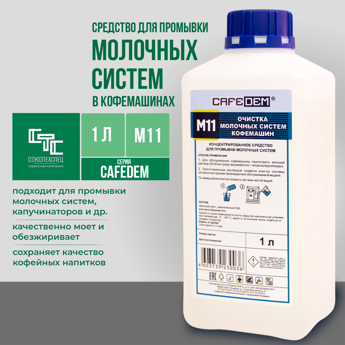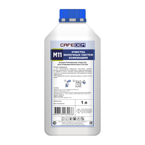 Жидкое моющее средство для очистки молочных систем кофемашин Cafedem M11, флакон 1 л информация: