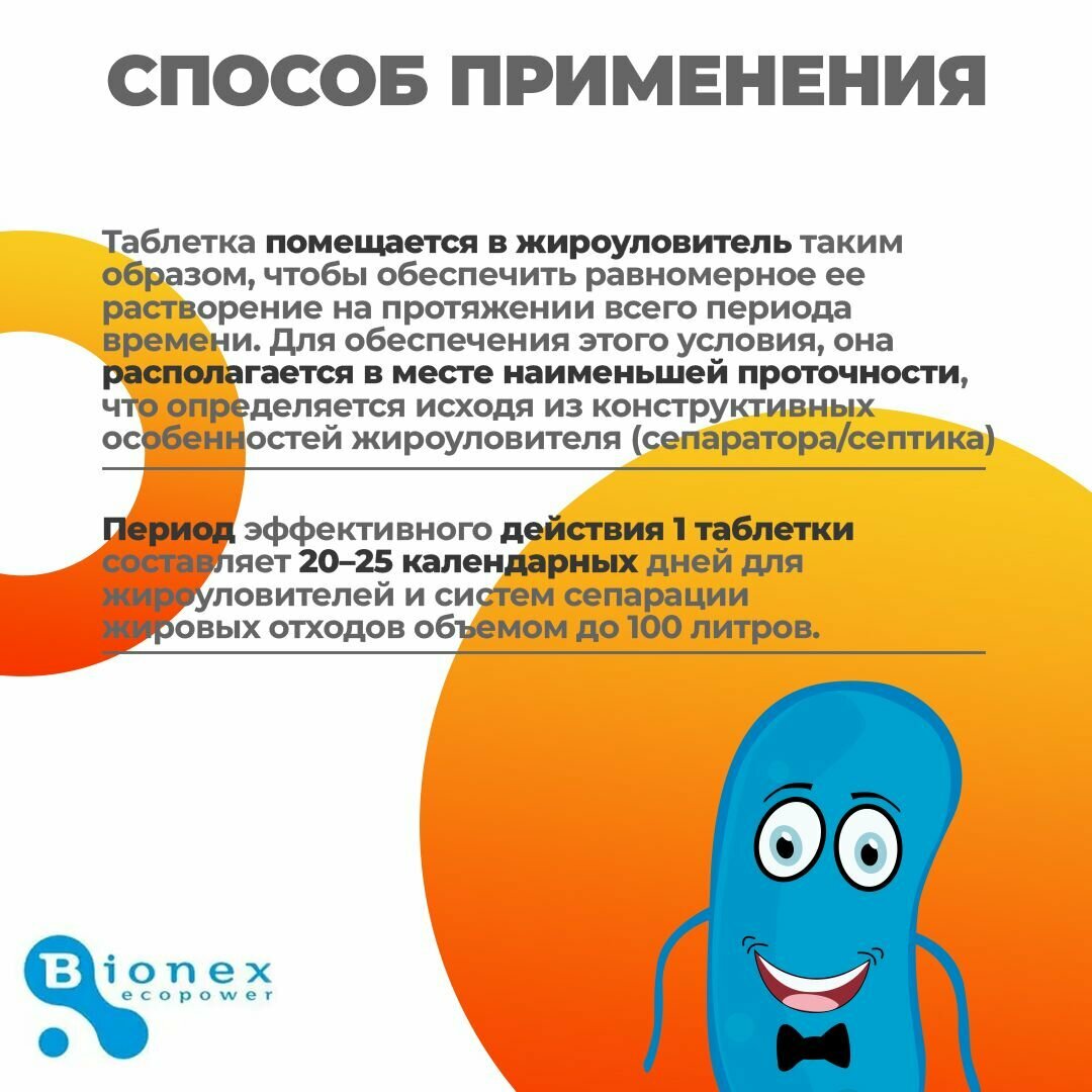 Чистящее средство от засоров для жироуловителей Bionex Grease WT Tab (12 таблеток) информация: