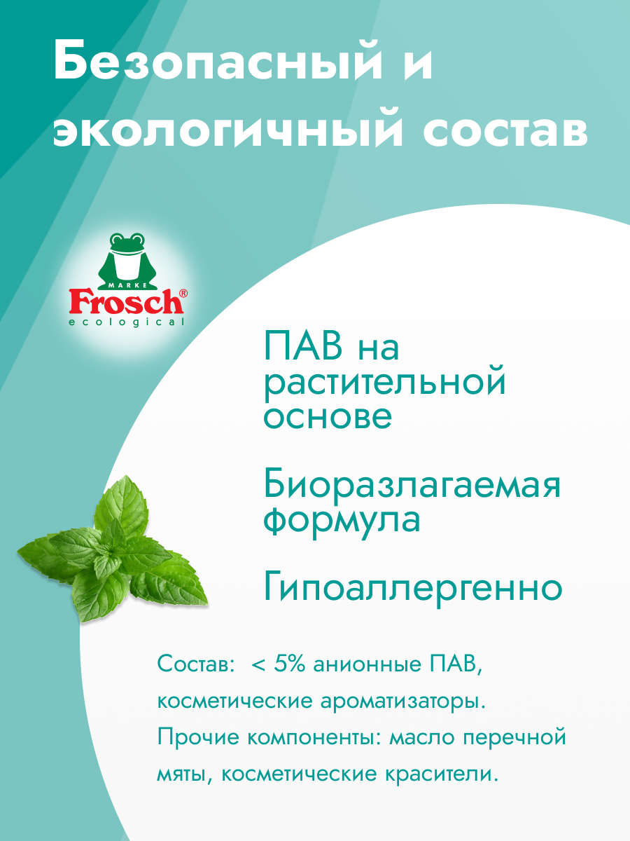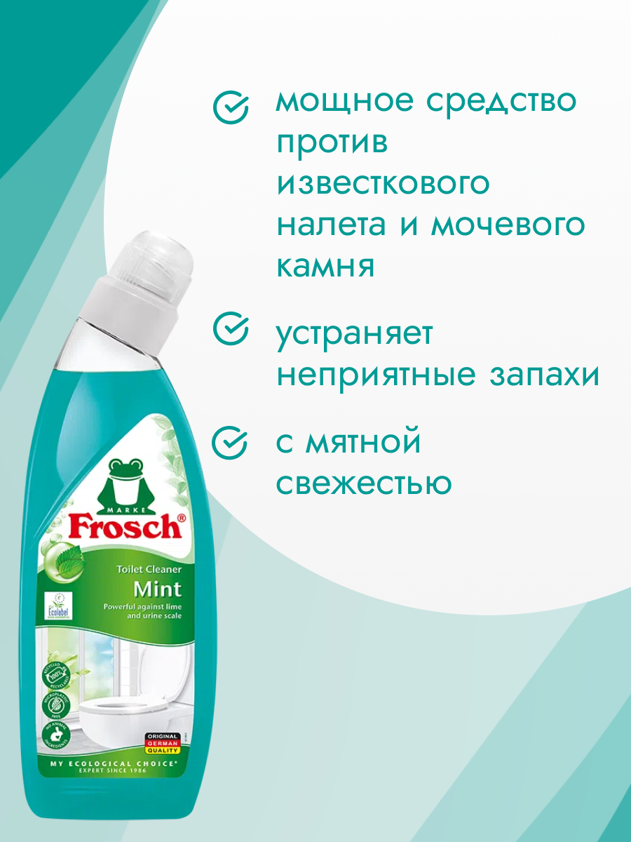 Очиститель для унитазов Frosch Мята, биоразлагаемый, безопасный для септиков, 750 мл информация:
