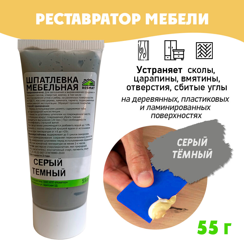 10 цен на Шпатлевка мебельная Resmat БЕЗ блистера, ремонт мебели ламината - цвет Темно-серый