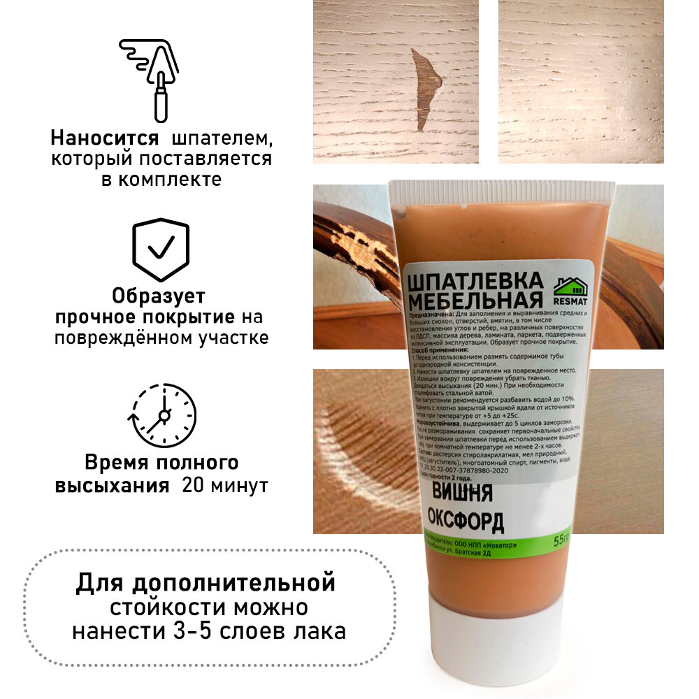 Отзывы на Шпатлевка мебельная Resmat БЕЗ блистера, ремонт мебели ламината - цвет Вишня Оксфорд
