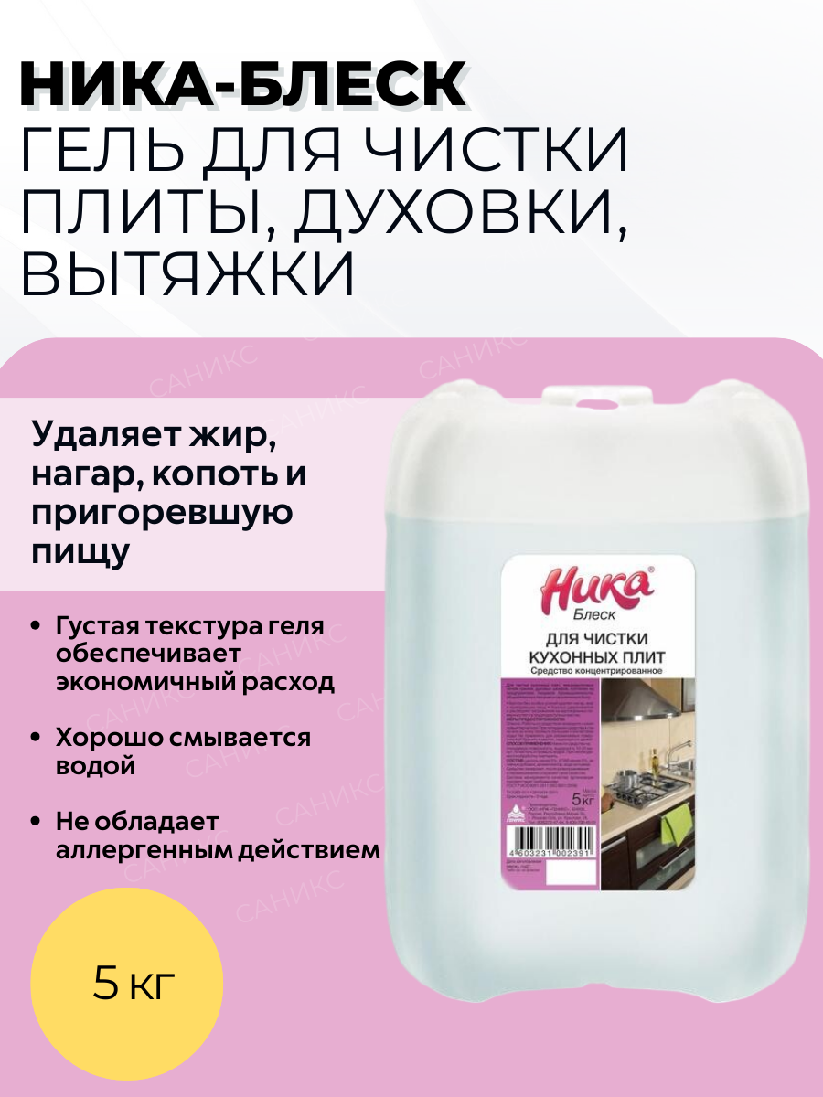 Гель антижир Геникс "Ника-Блеск", концентрат, для СВЧ и кухонных плит, 5кг информация: