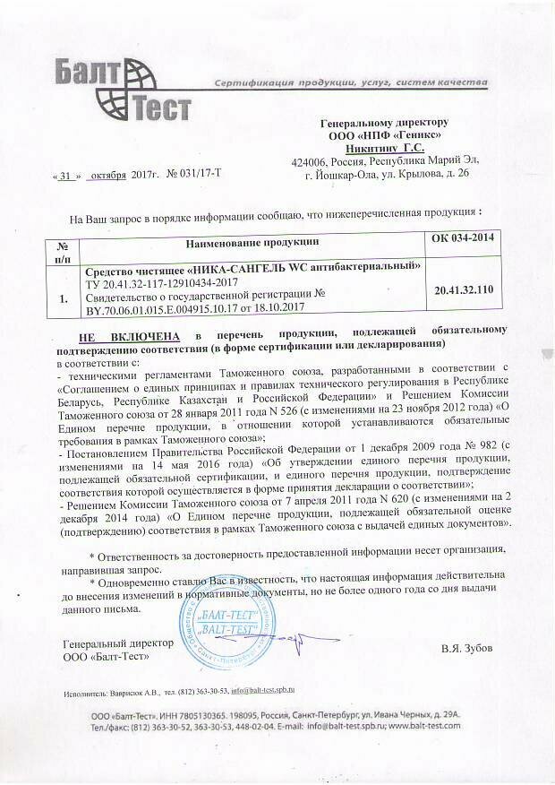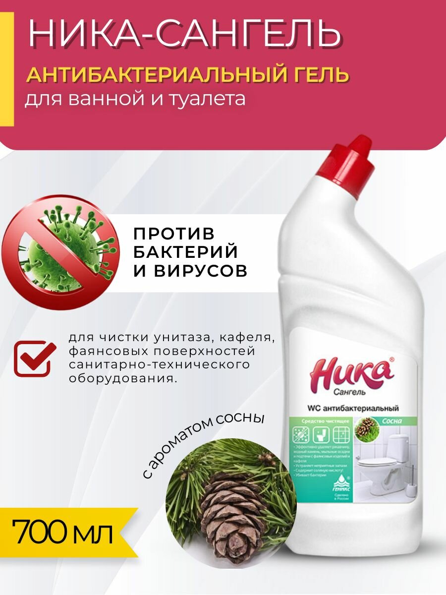Антибактериальный гель для сантехники Ника-сангель, 750 мл 1шт информация: