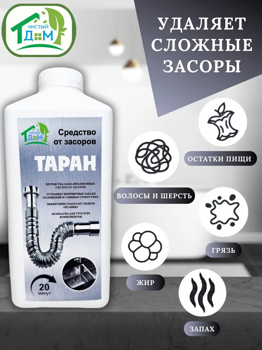 Средство для прочистки труб Чистый Домъ Таран, для устранения засоров, 1 л информация: