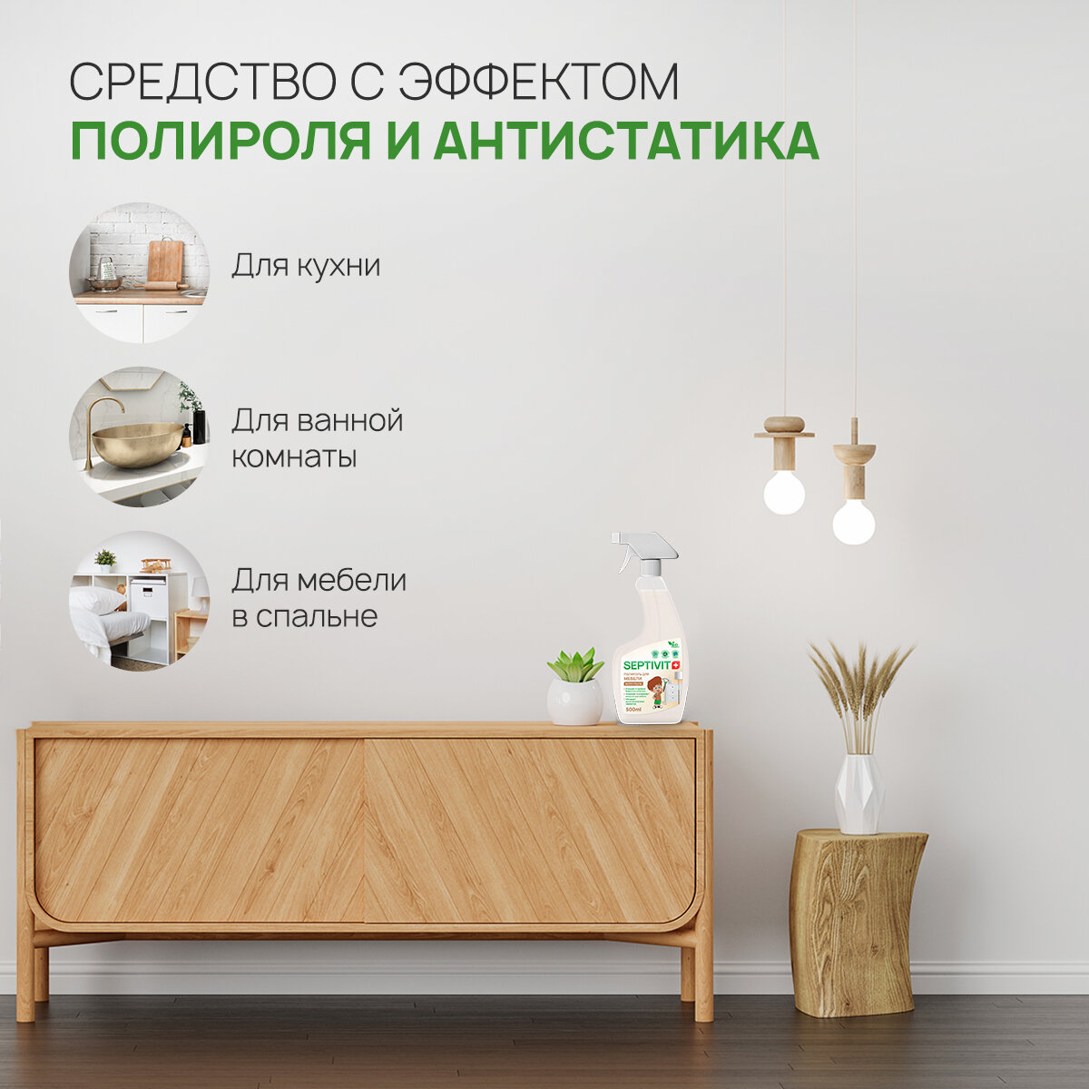 Отзывы на Полироль для мебели SEPTIVIT / Чистящее средство для мебели / Бытовая химия для уборки дома Септивит / 500 мл.