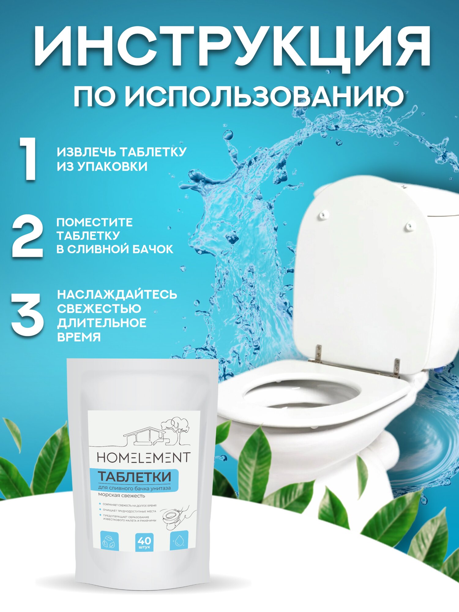 Таблетки для сливного бачка унитаза, 40 штук информация: