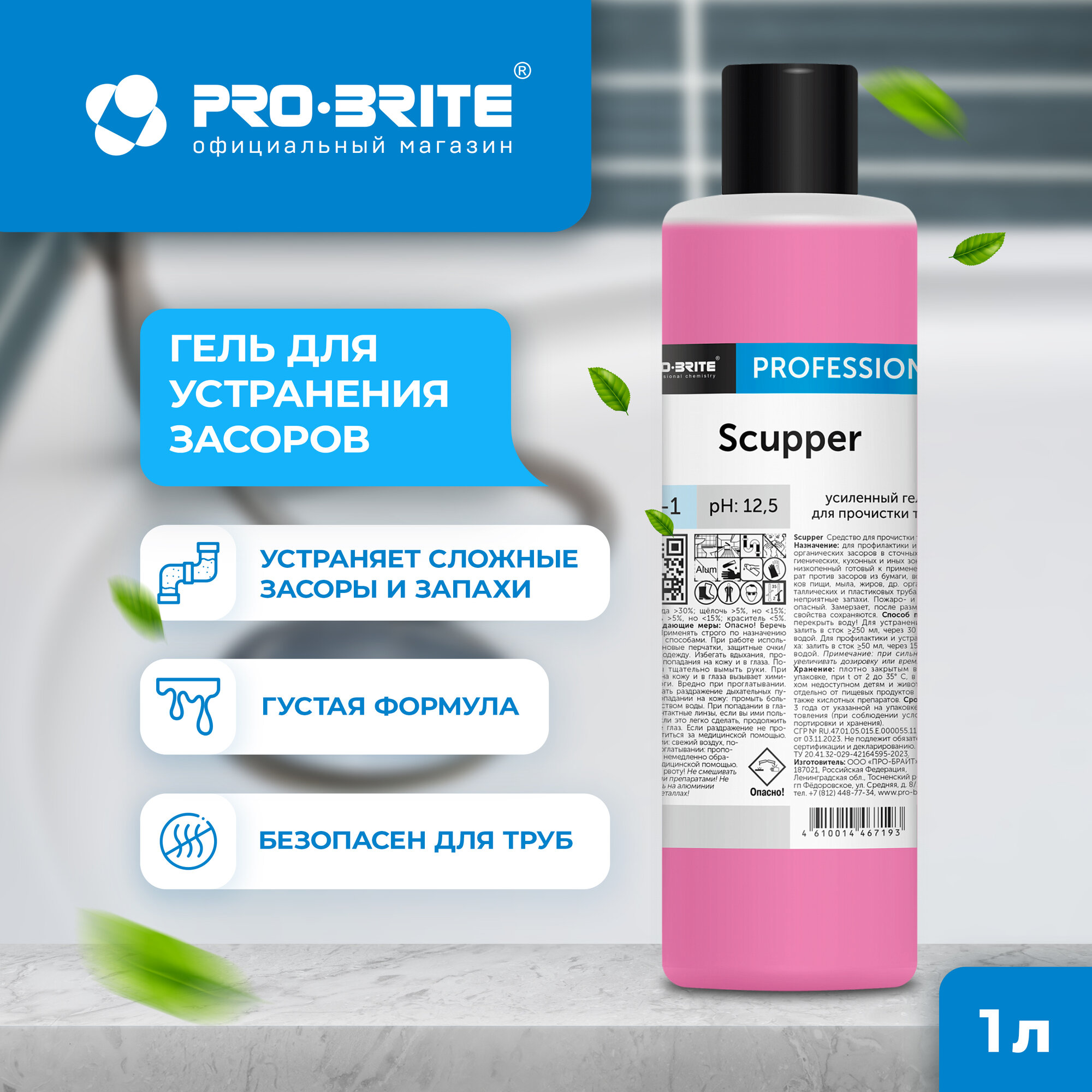 Гель для устранения засоров в сточных трубах PRO-BRITE Scupper, 1 л информация: