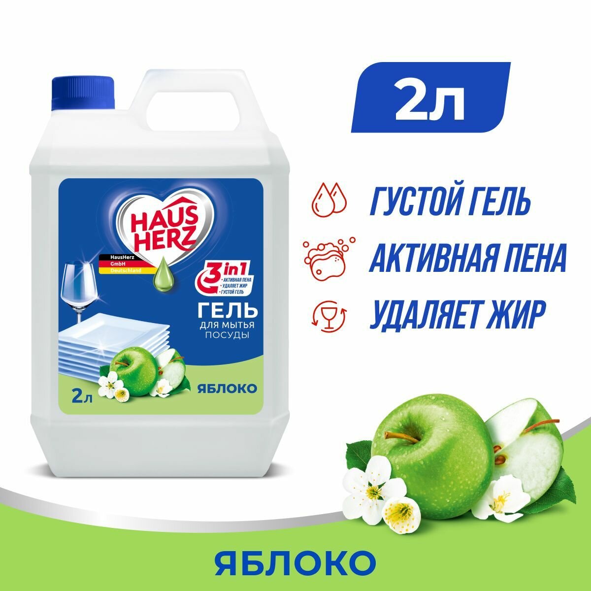 Средство для мытья посуды HausHerz "Яблоко", бесфосфатное, 2 л информация: