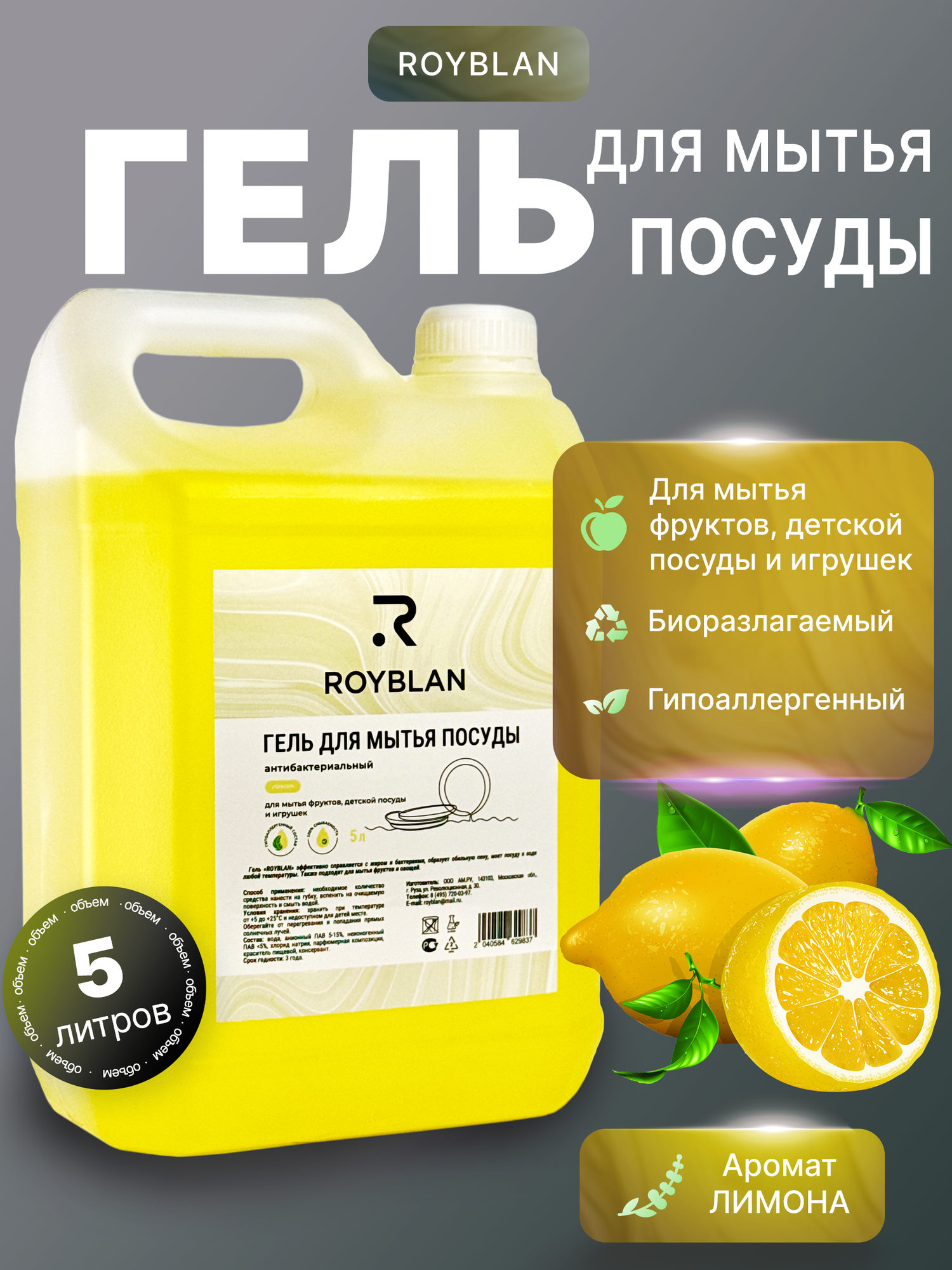 10 цен на Гель для мытья посуды ROYBLAN, 5 л, гипоаллергенный, с лимоном