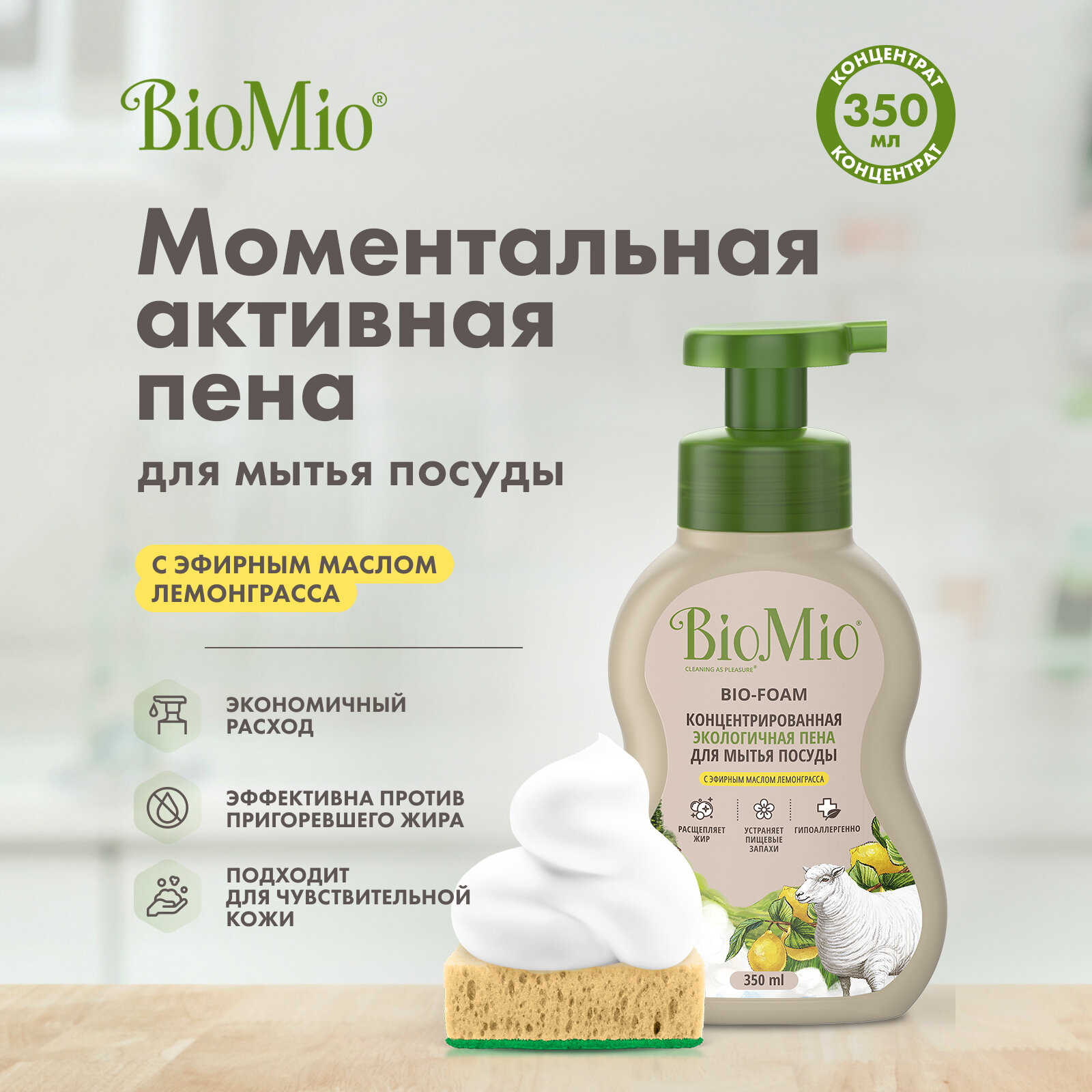 Пена для мытья посуды BioMio BIO-FOAM с эфирным маслом лемонграсса, экологичная, 350 мл информация: