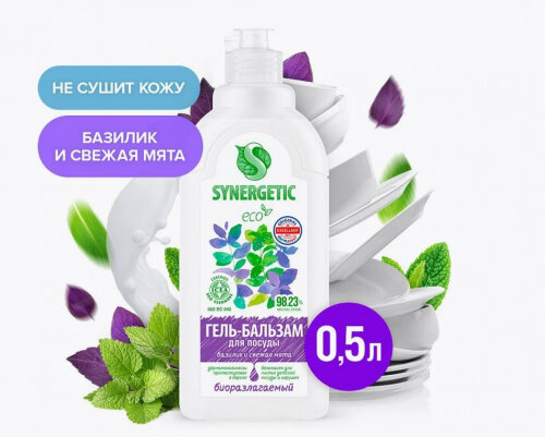 Отзывы на Гель-бальзам для мытья посуды Synergetic Базилик и свежая Мята, гипоаллергенный, 500 мл